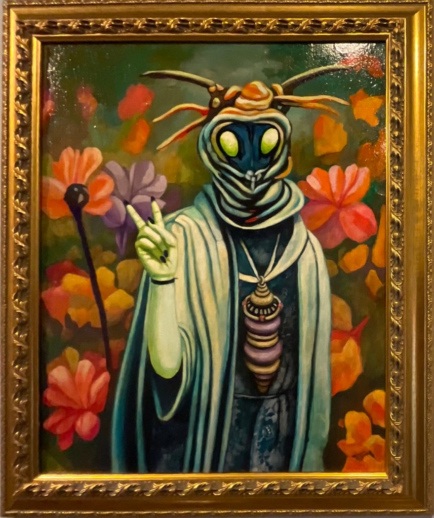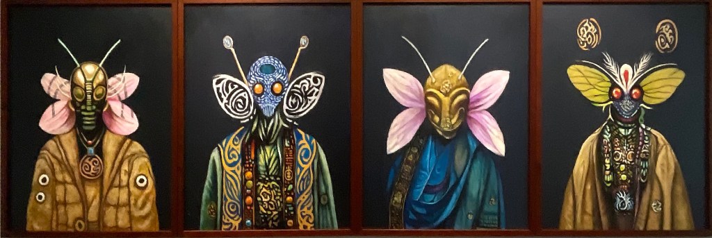 Starting from the simple premise: without flowers no humans, without insects no flowers. Giving acknowledgment to these vital ancestors of the moment.The Trickster, acrylic on canvas, 80cm x 96cmJill, acrylic on canvas, 80cm x 96cmJack, acrylic on canvas, 80cm x 96cmThe Board. Acrylic on canvas, individually 64cm x 76cmHard to Say, various wood and acrylic paint.80cm l x 76cm d x 30cm w.60 days of production challenge exhibition